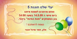 הדפסת הזמנות לאירועים » הזמנות בגודל 10 / 20 ס"מ » יום הולדת